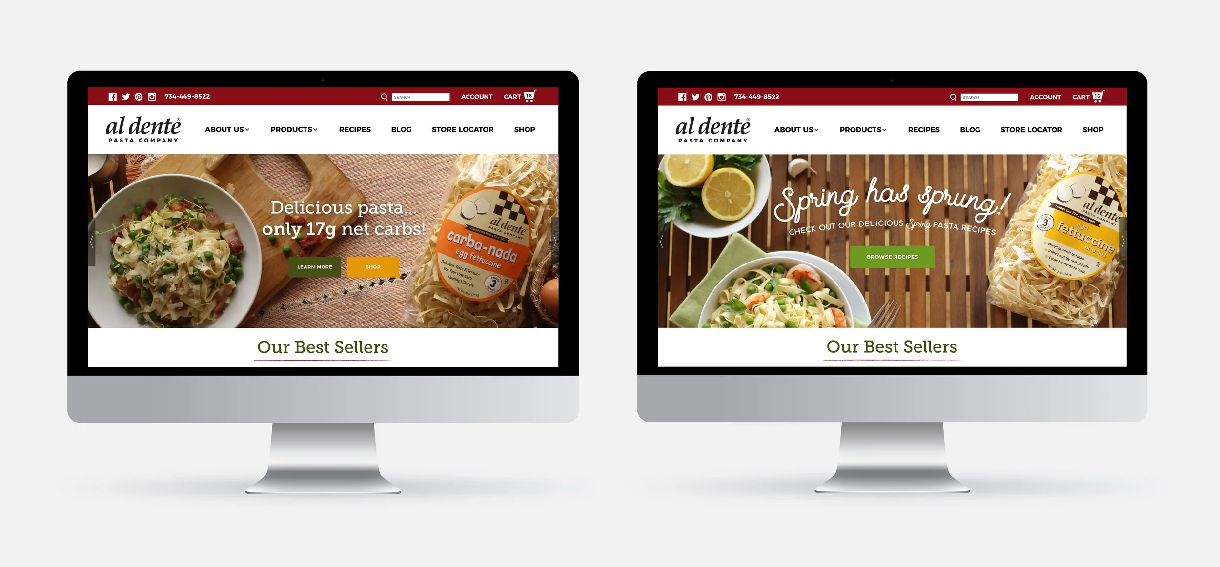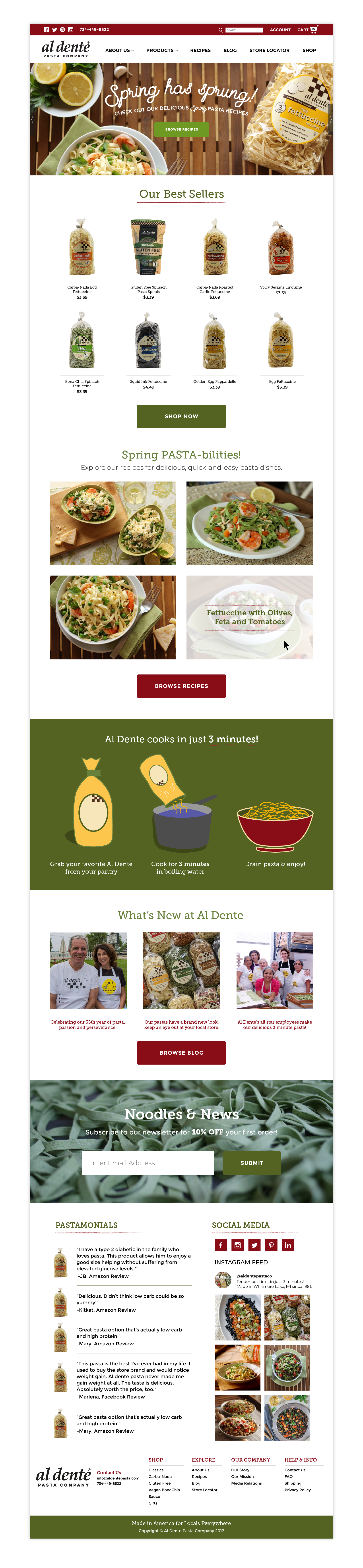 Website interface redesign for Al Dente Pasta Company, a small-batch artisanal pasta brand, focused on creating a clean, modern experience that reflects the quality and craft of the product.