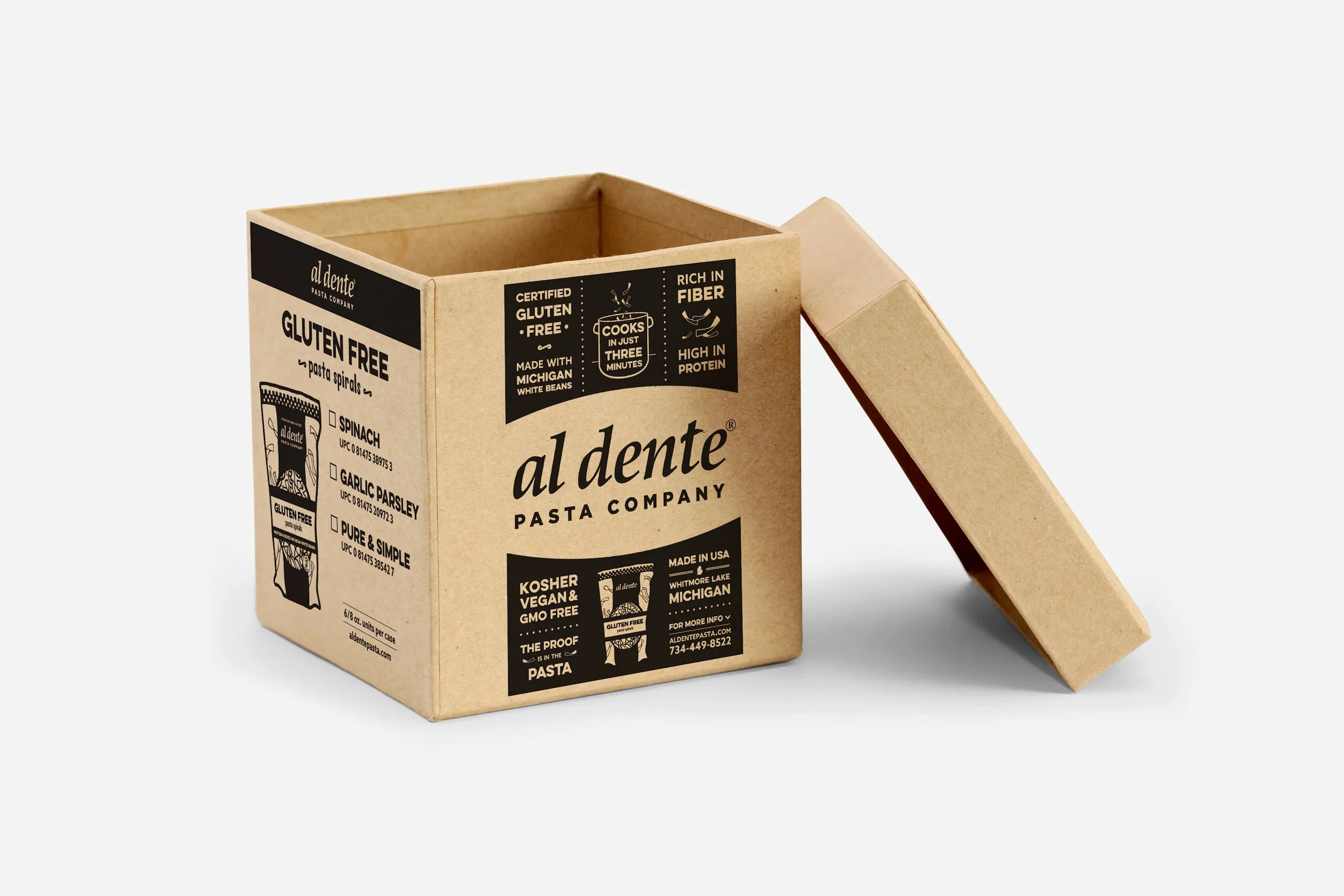 A refreshed pasta packaging design created to celebrate Al Dente’s 35th anniversary, featuring a modern, clean aesthetic that highlights the brand’s unique flavors, three-minute cook time, and homemade quality.