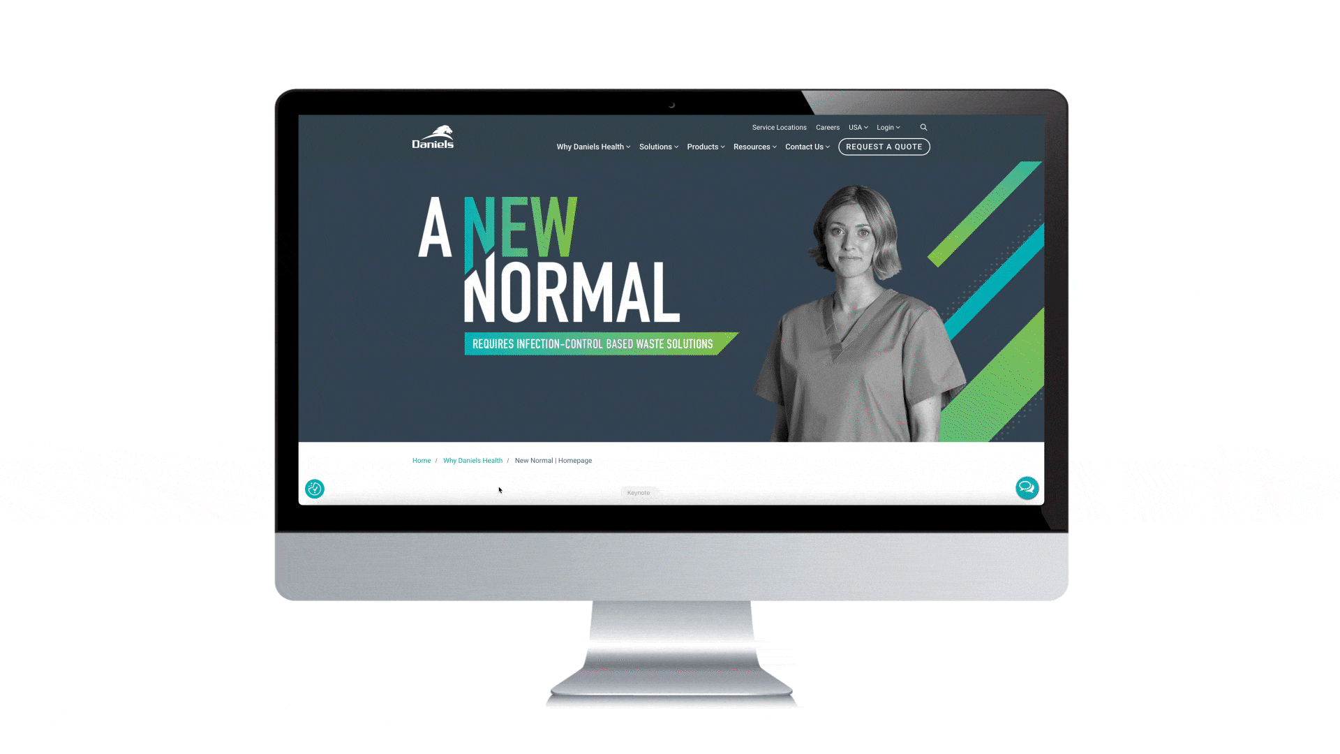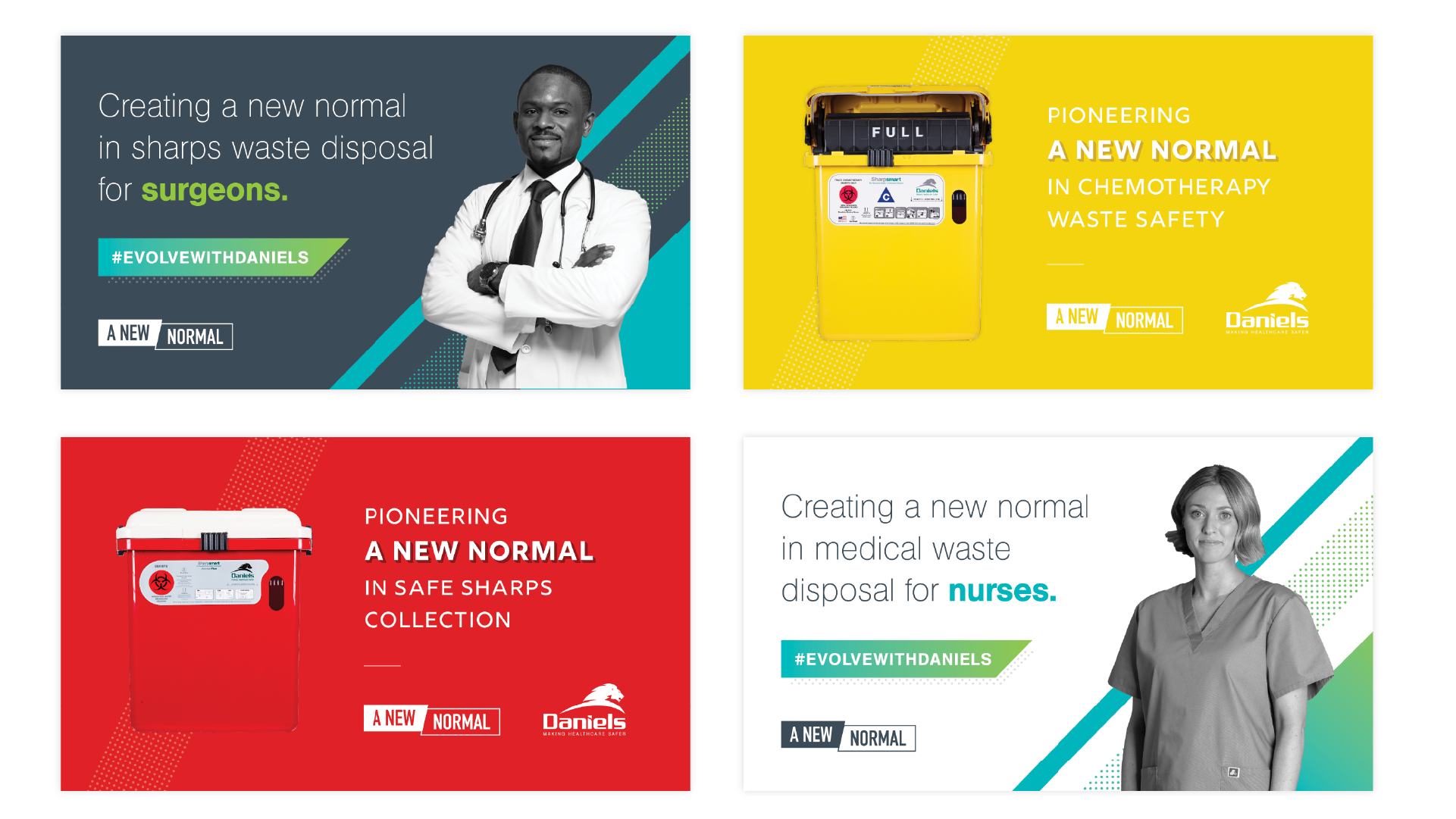 The “Creating a New Normal” campaign for Daniels Health, a healthcare waste management company specializing in reusable, safety engineered clinical containers, was a global initiative developed at the height of the COVID-19 pandemic. Grounded in the goal of keeping clinicians safe, the campaign positioned Daniels as a trusted medical waste partner by delivering thought leadership and education around elevated infection control standards and safe waste handling practices.